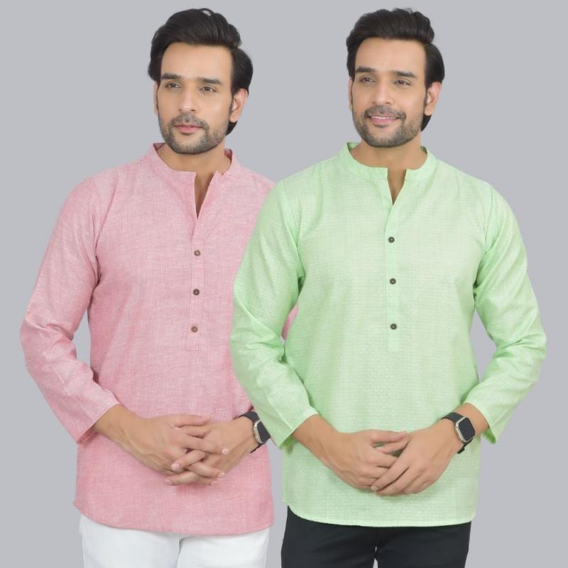 Inform when this item available Combo of 2 Men Cotton Self Design Short Kurta Pink and Green