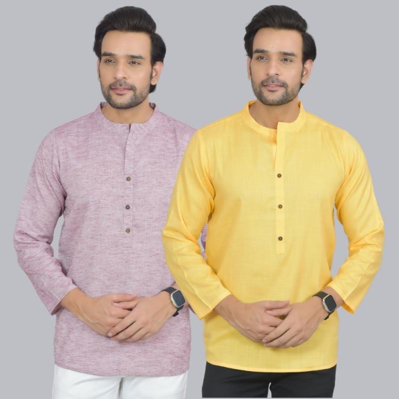 Inform when this item available Combo of 2 Men Cotton Self Design Short Kurta Purple and Yellow