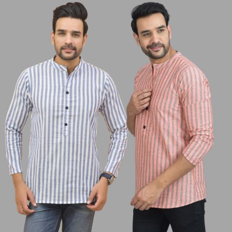 Inform when this item available Combo of 2 Men Cotton Stripe Short Kurta-25768