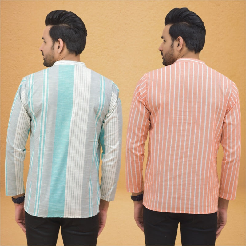 Inform when this item available Combo of 2 Men Stripe Cotton Handloom Kurta White Peach-25034