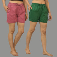 Inform when this item available Combo of 2 Bottle Green and Dark Pink Cotton Women Shorts-10544