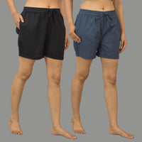Combo of 2 Gray and Black Cotton Women Shorts-10601