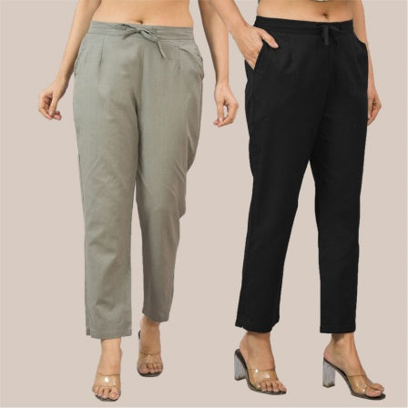 Inform when this item available Combo of 2 Gray and Black Cotton Flax Women Trouser Pant-10328
