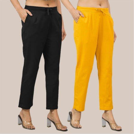 Inform when this item available Combo of 2 Yellow and Black Cotton Flax Women Trouser Pant-10337