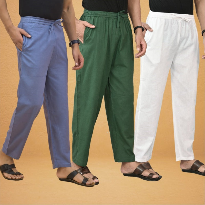 Inform when this item available Combo of 3 Men Solid Cotton Flex Pant Bottle Green White and Sky Blue-15600