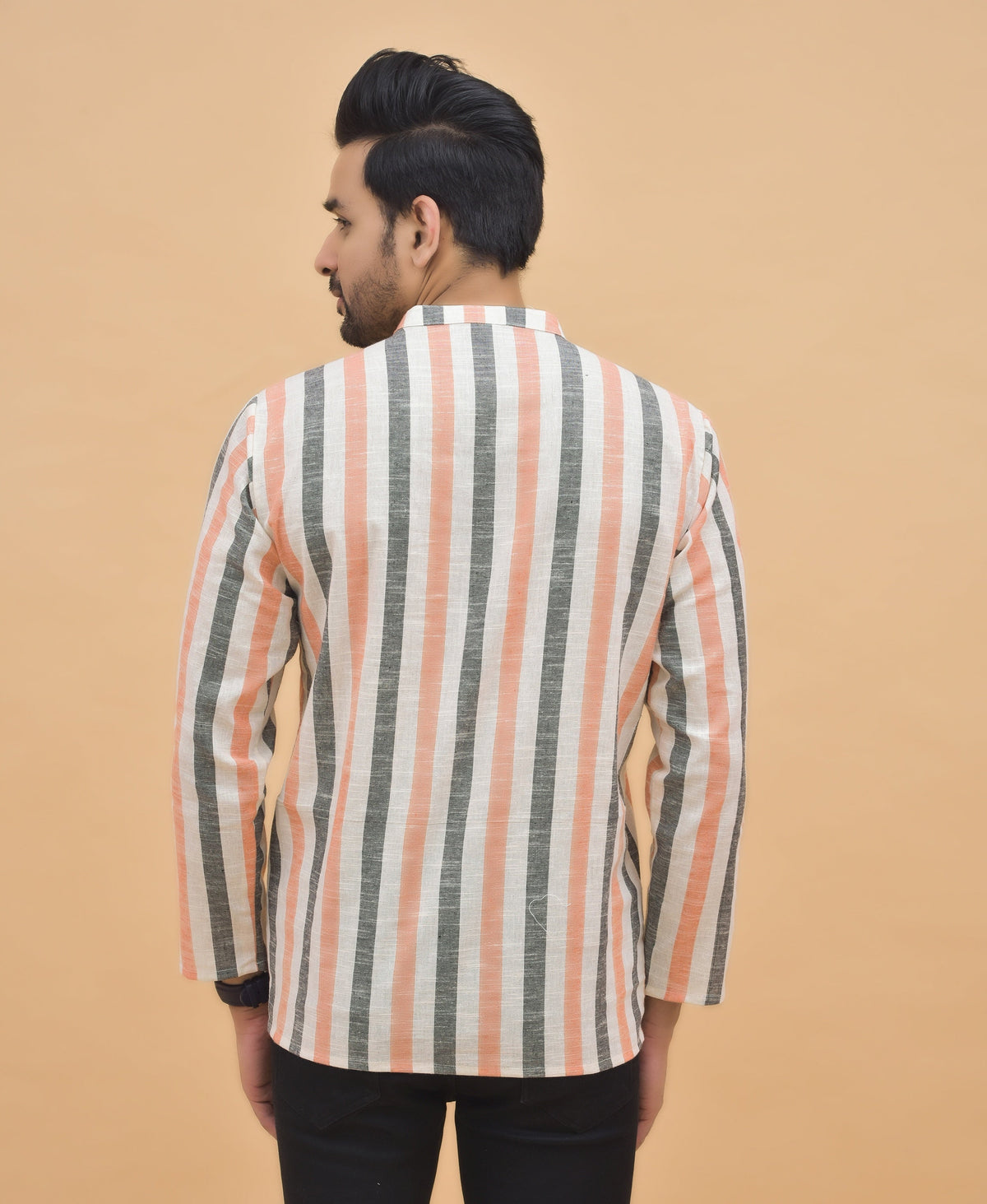 Inform when this item available PEACH GRAY STRIPE COTTON HANDLOOM CORD SET-25002