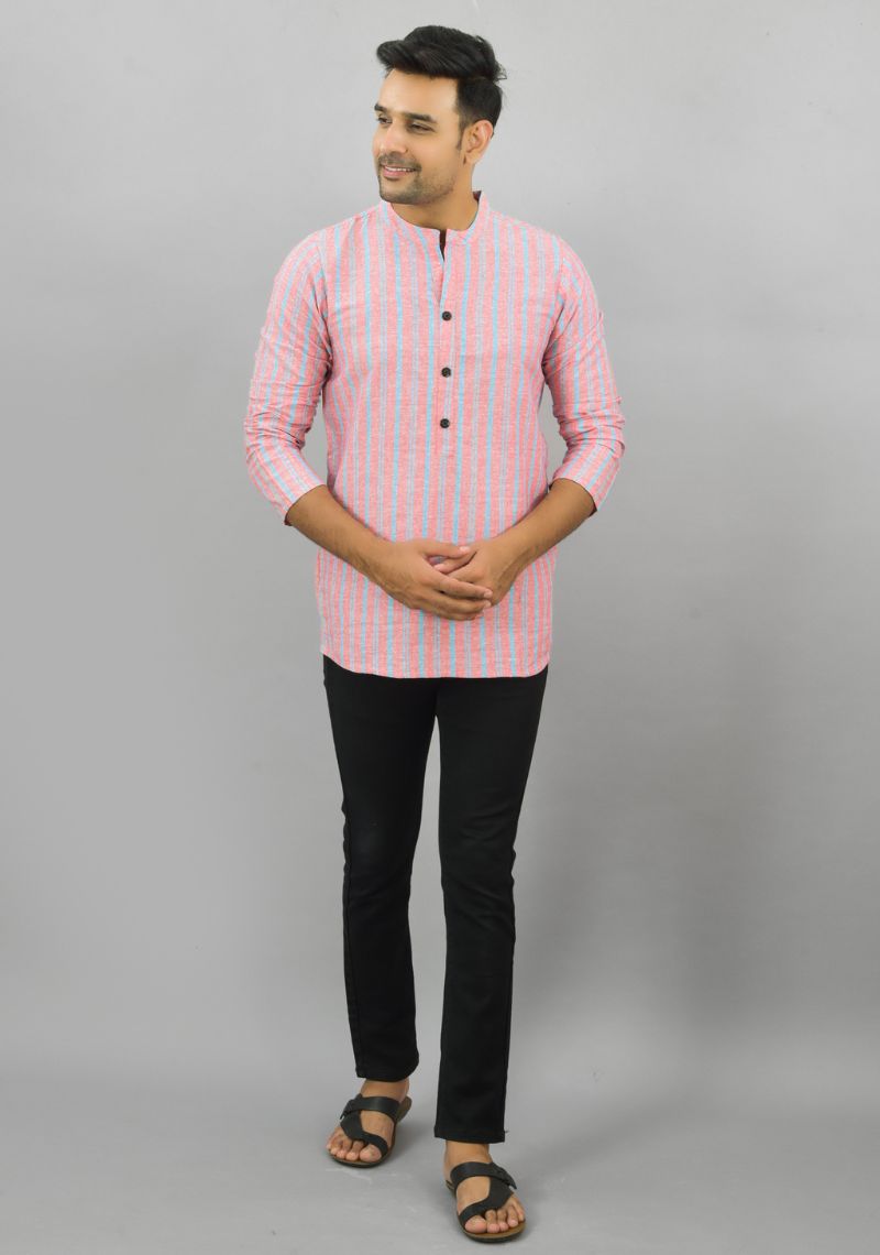 PINK CYAN STRIPE COTTON HANDLOOM CORD SET-25688 - S(40 INCH)
