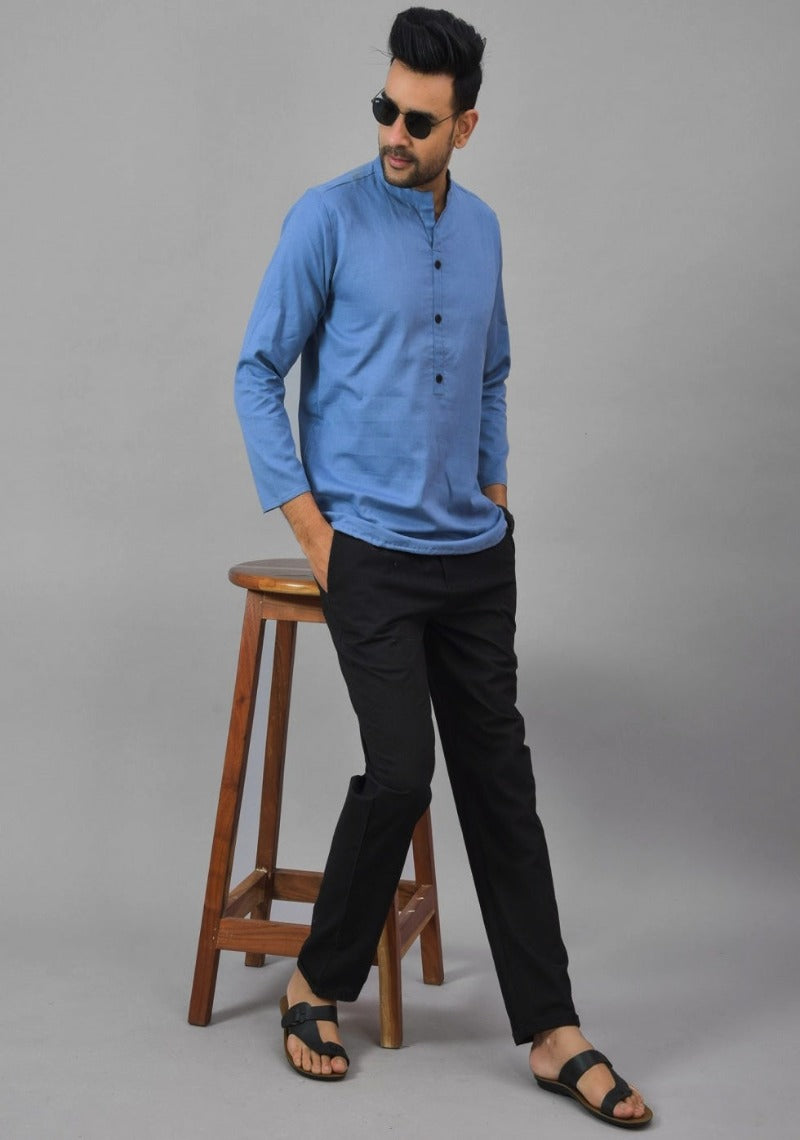 SKY BLUE SOLID COTTON HANDLOOM CORD SET-25081 - S(40 INCH)