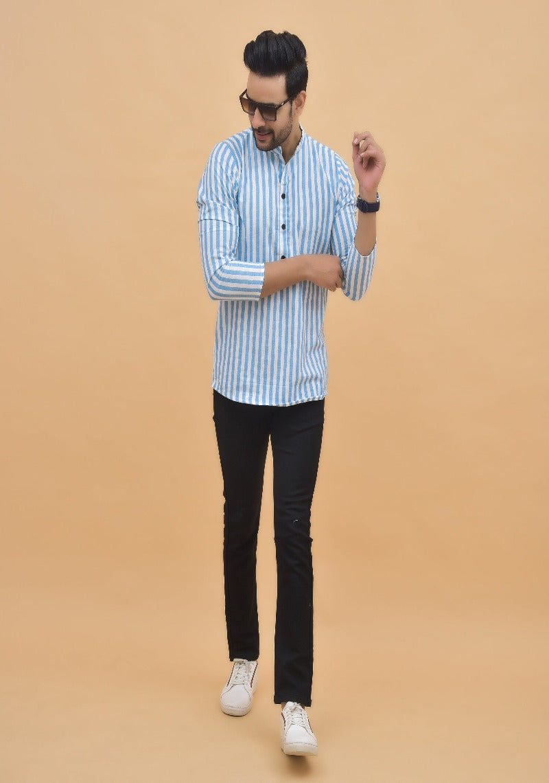 Inform when this item available Sky Blue White Stripe Cotton Handloom Cord Set-25001