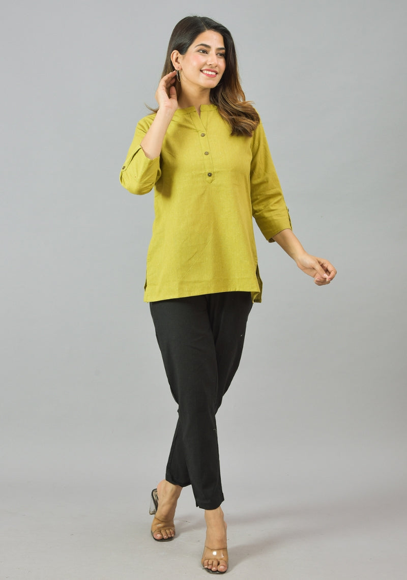 Olive Green Solid Cotton Women Top-10371 - S(38 INCH)