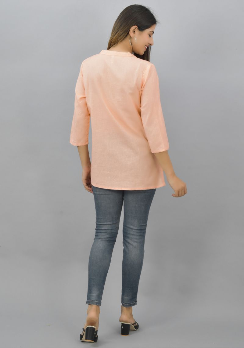 Peach Solid Cotton Flax Women Top-10625 - S(38 INCH)