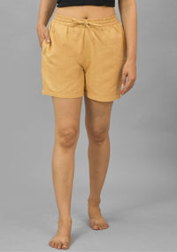 Beige Solid Cotton Flax Shorts - S