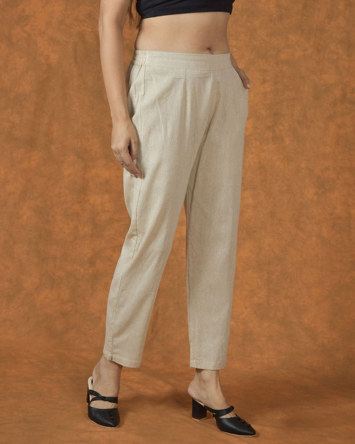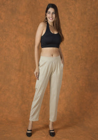 Inform when this item available Beige Solid Cotton Trouser Pant