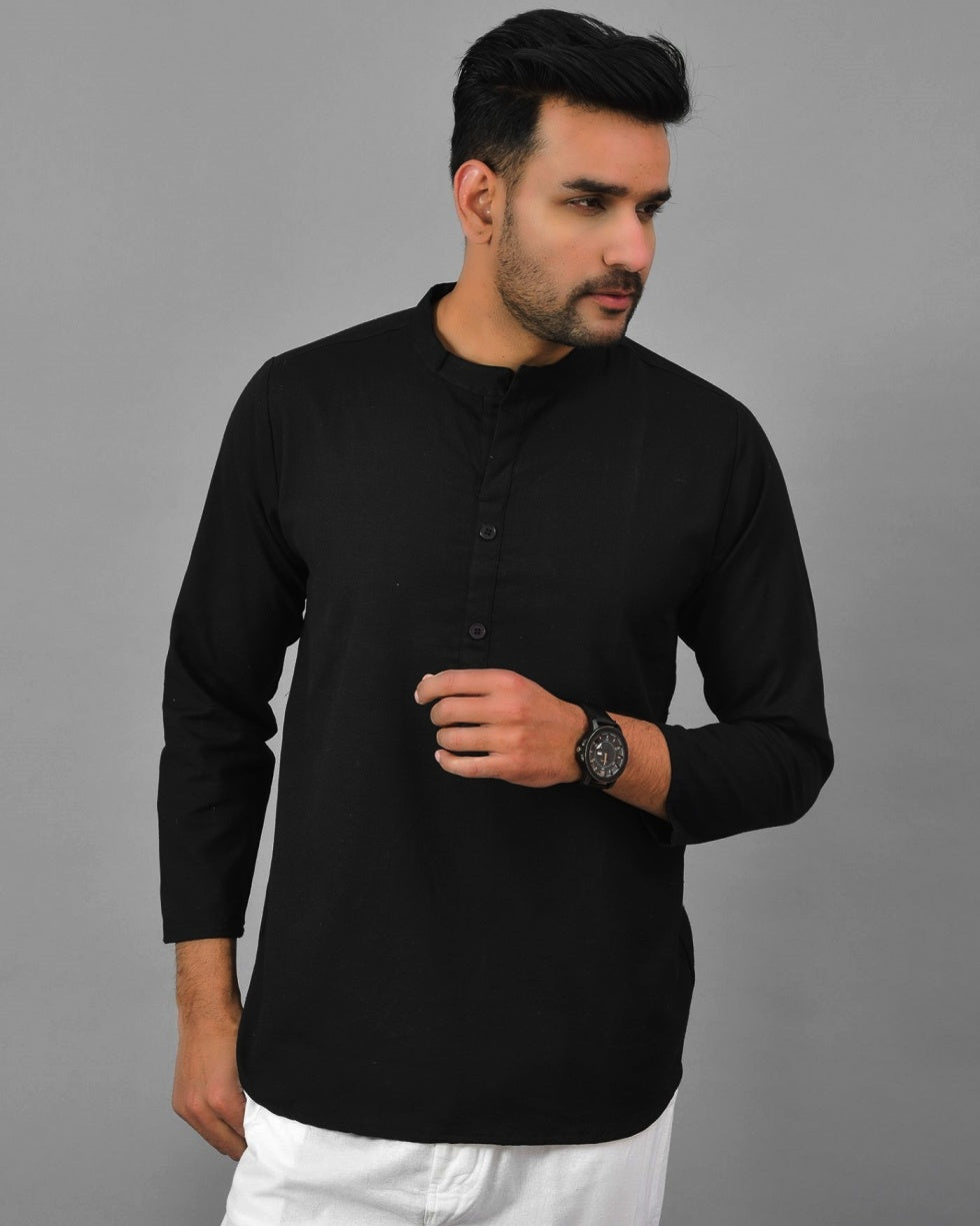 Inform when this item available BLACK SOLID COTTON HANDLOOM CORD SET-25078