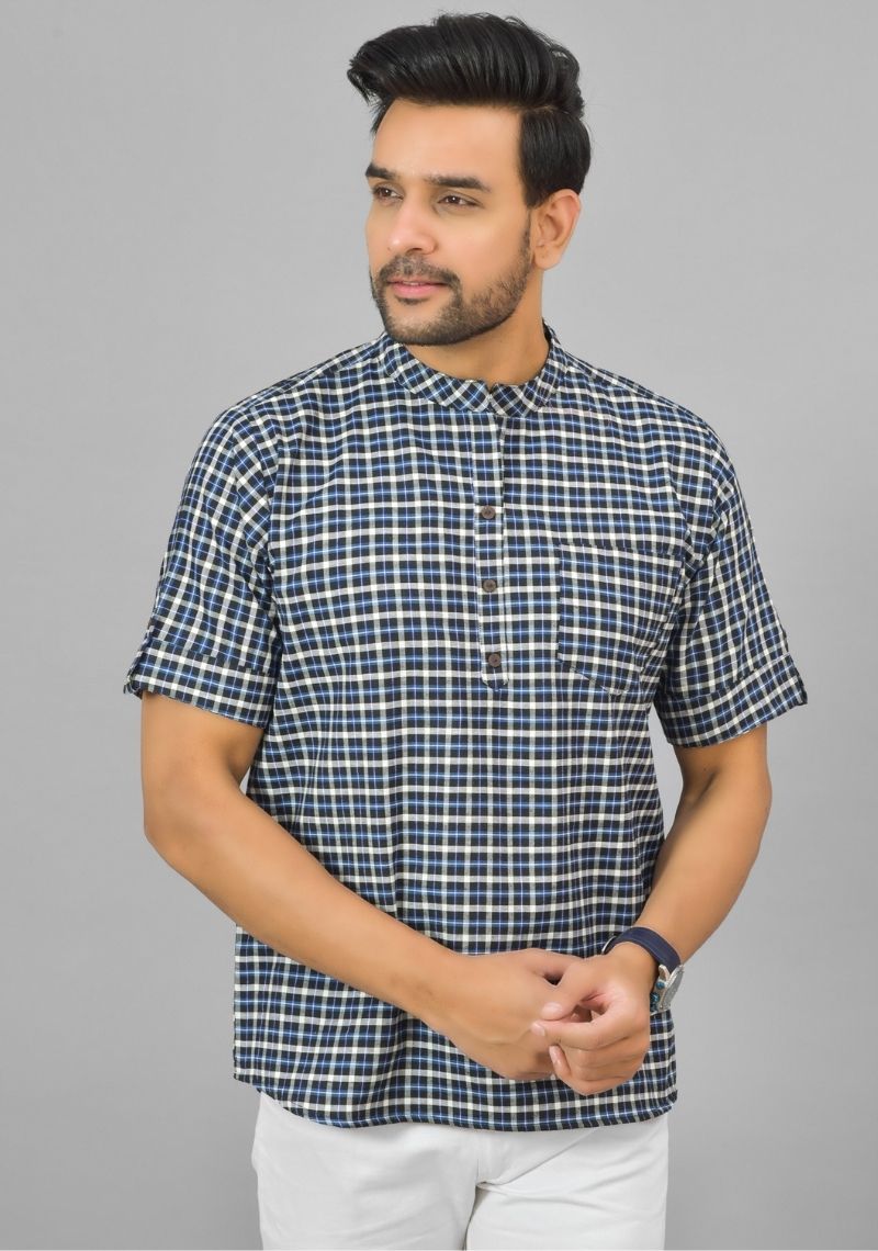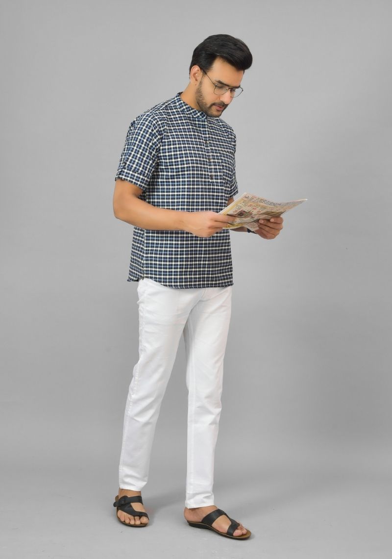 Inform when this item available BLUE WHITE CHECKS COTTON HANDLOOM CORD SET-25291